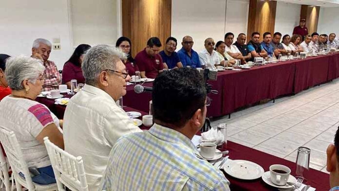 Tapachula, Chiapas; 9 de Octubre del 2023.- Plácido Morales Vázquez, aspirante a la Coordinación de la Defensa de la Cuarta Transformación Nacional en Chiapas, se reunió con líderes sindicales de los sectores magisterial, de la Secciones 7 y 40, de la UNICACH y el COBACH, así como con músicos y trabajadores del Sector Salud.