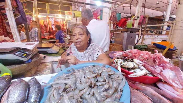 Tapachula, Chiapas; 5 de Diciembre del 2023.- Debido a que los precios de los pescados y mariscos están elevados, las ventas de estos productos en los mercados locales son bajas, apenas como del 50 por ciento, aunque hay confianza de que en unos días mejore esta situación.