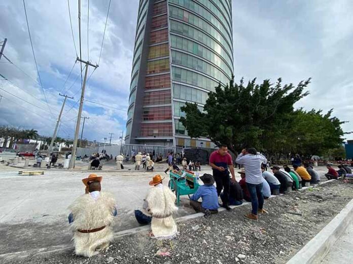 Los tzotziles se replegaron también del edificio de la Torre Chiapas, un inmueble de varios pisos donde se alojan oficinas de instituciones de los tres niveles de gobierno.