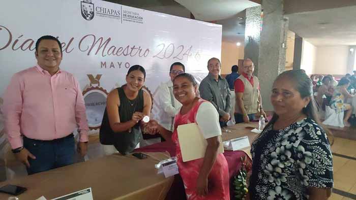 Tapachula, Chiapas; 15 de Mayo del 2024.- Maestros de la región Costa-Soconusco de Chiapas fueron festejados por la Secretaría de Educación Pública del Estado, y en el marco de un emotivo evento les entregaron la medalla conmemorativa a los 30 años de servicio a docentes jubilados y activos.