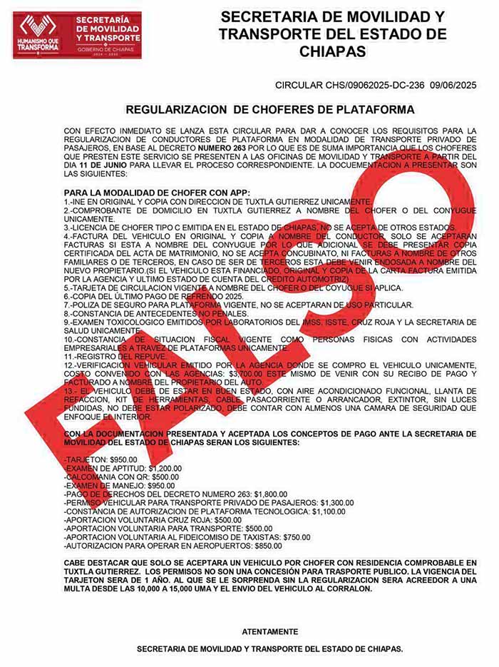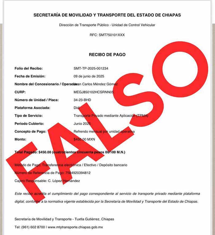 Tuxtla Gutiérrez, Chiapas; 09 de Junio de 2025.- Con relación a distintas versiones que han circulado en una página de Facebook sobre la supuesta entrega de permisos para operar servicios de transporte mediante plataformas digitales en el Estado de Chiapas, Didi en particular, la Secretaría de Movilidad y Transporte del Estado (SMyT), aclara lo siguiente: