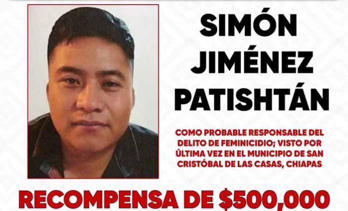 San Cristóbal de Las Casas, Chis.;18 de Julio.- Una recompensa de 500 mil Pesos ofreció la Fiscalía de Chiapas para la localización y detención de Simón Jiménez Patishtán, alias «El 666», feminicida de la regidora del Partido del Trabajo (PT) Lola Patricia Patishtán, en el Ayuntamiento de San Juan Chaumula.