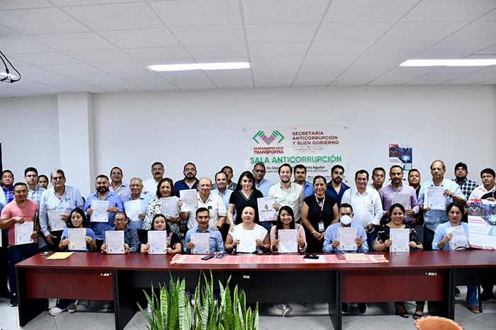 El acto se realizó en la Sala Anticorrupción contando con la presencia de César Eulieser Galdámez Pimentel, coordinador de Verificación Externo de la Obra Pública Estatal y del Gremio Constructor, así como de Tania Lucía Vila Cisneros, jefa de Área de Desarrollo de Sistemas.