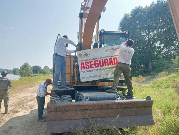 Suchiate, Chiapas; 7 de Noviembre del 2025.- Personal de PROFEPA y SEMARNAT están dejando sin agua para riego a cientos de hectáreas de cultivo en el municipio de Suchiate, al “asegurar este viernes maquinaria pesada” perteneciente a los campesinos y productores del Distrito de Riego No. 46 en esta localidad fronteriza, con el argumento de estar dañando el medio ambiente.