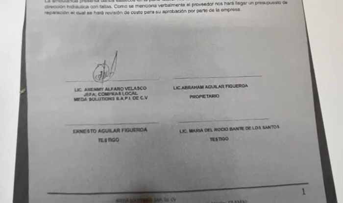 De acuerdo con la denunciante, en diciembre de 2023 fue contactada por dicha empresa para la renta de una ambulancia que permaneció de manera permanente dentro del penal. Señaló que únicamente recibió pagos correspondientes a los meses de enero, febrero y marzo de 2024, pese a que el servicio continuó y las facturas siguieron siendo emitidas y entregadas, sin que hasta la fecha se hayan cubierto los montos pendientes.