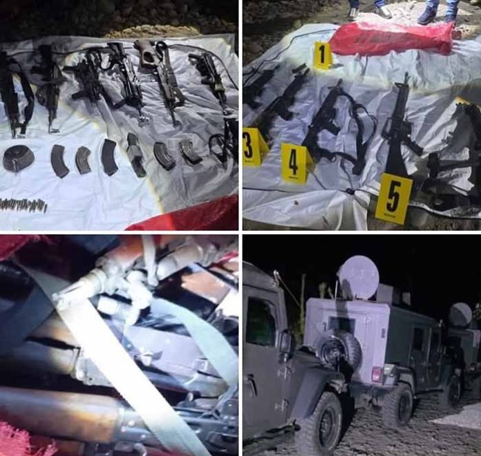 Al inspeccionarlos, confirmaron la presencia de seis fusiles AK-47, tres AR-15, un M16, un fusil calibre .223 y un fusil Beretta, además de siete cargadores -entre ellos uno tipo caracol- y al menos 275 cartuchos útiles de distintos calibres.