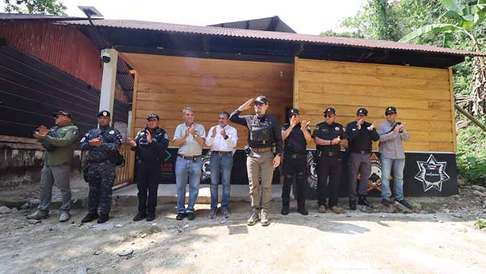 Tapachula, Chiapas; 08 de abril de 2026.- “Estamos viendo cristalizado un proyecto que iniciamos hace aproximadamente un año, donde comentamos que íbamos a tener una base de operación permanente. A partir de hoy se quedan 16 elementos”, señaló el titular de la Secretaría de Seguridad del Pueblo (SSP), Óscar Alberto Aparicio Avendaño, al inaugurar la Caseta de Vigilancia y Seguridad en la zona media alta de Tapachula.