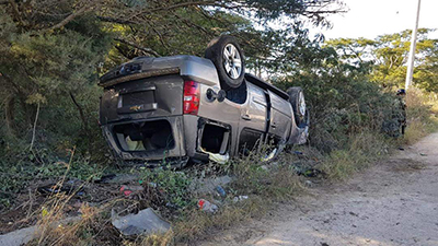 Ni habría transitado un kilómetro cuando la camioneta en donde transportaban los salvadoreños sin papeles también volcó, quedando entre la maleza, con cuatro de ellos seriamente lesionados, uno de ellos muy grave.
