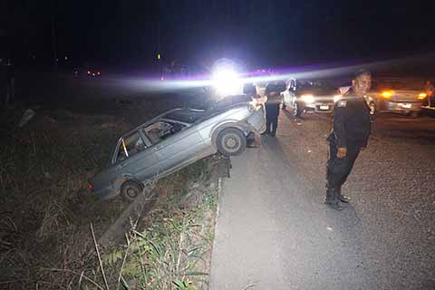 Tras el impacto, el chofer del Aveo salvó la vida, pero el Tsuru terminó rebotando y quedó de lado derecho dentro de un zanjo, donde los tripulantes al ver lo que habían causado, se dieron a la fuga abandonando en el lugar su unidad.