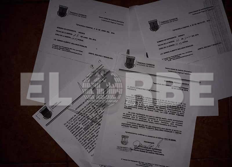 Mientras que los apercibimientos a los que no se presentó Tomassini están contenidos en el expediente 540/2019 del Centro Estatal de Justica Alternativa del Supremo Tribunal de Justicia del Estado de Chiapas.