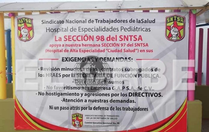 El Secretario General del Sindicato de la Sección 97, Axel López Gómez, dio a conocer que, la problemática que se vive en el hospital Ciudad Salud se da desde hace un año, la cual es originada por el tráfico de influencias por parte de directivos en la asignación de contratos para el suministro de insumos y medicamentos.