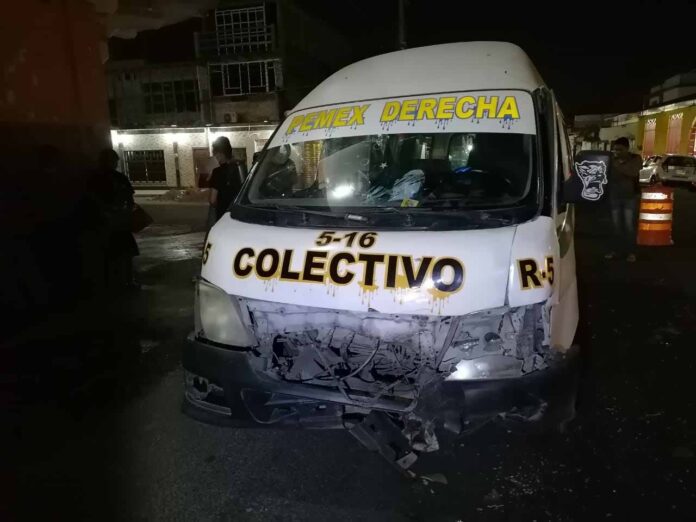 La colectiva afectada es una Nissan Urvan de ruta Pemex Derecha, número económico 5 -16, placas de circulación del servicio público, conducida por David Nolberto.