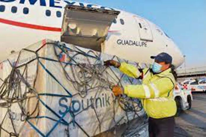 Las vacunas producidas en Rusia por el Centro Nacional de Investigación de Epidemiología y Microbiología Gamaleya arribaron a la terminal 1 del Aeropuerto Internacional de la Ciudad de México (AICM) «Benito Juárez», procedente del Aeropuerto Internacional de Moscú, Rusia, con escala en París, Francia.