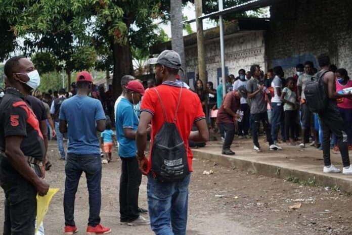 Tapachula, Chiapas; 18 de Mayo del 2021.- La Comisión Mexicana de Ayuda a Refugiados (Comar), atiende a unas 300 solicitudes de migrantes al día con apenas unos 25 oficiales federales, los cuales son insuficientes y ha provocado que se generen peleas callejeras entre los indocumentados que buscan obtener un lugar en la fila.
