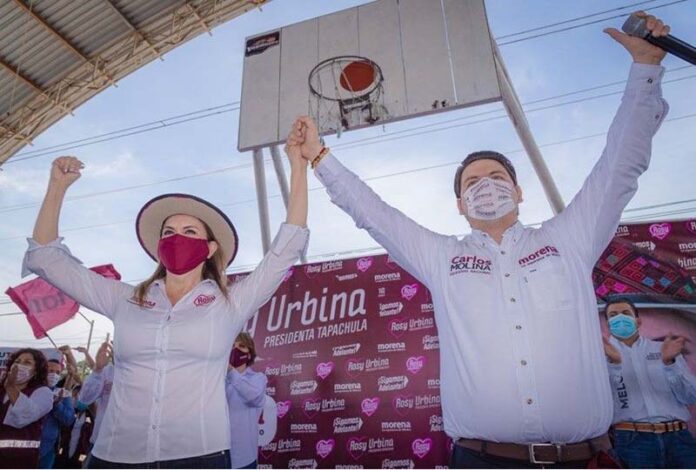Con la presencia del delegado nacional de Morena, Carlos Molina, los candidatos: a la Presidencia Municipal, Rosy Urbina; a diputados locales, por el distrito XIX, Yamil Melgar; y XXIV, Yolanda Correa, reafirmó que, con el respaldo del pueblo, la transformación y esperanza continuará en Tapachula.