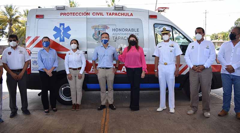 Tapachula, Chiapas.– En un acto solidario que permite reforzar la atención al rubro de la salud de la población local, refugiada y migrante, el Ayuntamiento de Tapachula recibió de la Agencia de la ONU para los Refugiados (ACNUR), una ambulancia tipo II Europa que mejorará los tiempos de respuesta y atención a urgencias médicas en esta ciudad.