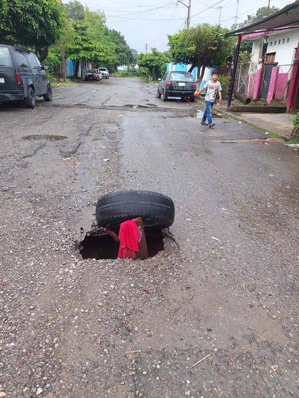 Un grupo de los afectados acudió a las oficinas de EL ORBE para señalar que, derivado de las lluvias de los últimos días, se ha generado ese hundimiento en la calle, lo que representa un grave peligro para la población, incluidos conductores de vehículos y transeúntes.