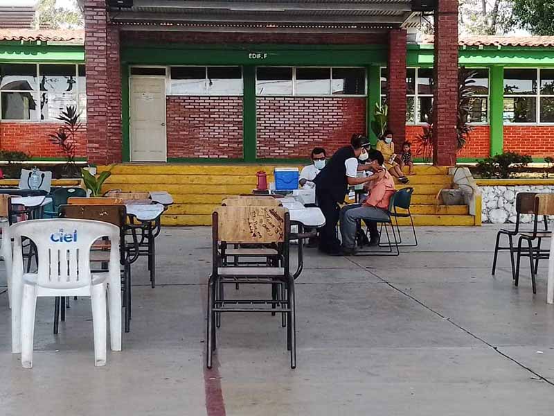 Huixtla, Chiapas; 27 de Enero de 2022.- Esté jueves alrededor de las 9 horas, en las instalaciones del Plantel Conalep ubicado en el tramo carretero Huixtla-Tapachula, se llevó a cabo la vacunación contra el Covid-19 a personas de 40 años de edad en adelante, aplicándose las vacunas de la marca AstraZeneca, Pfizer y Moderna.