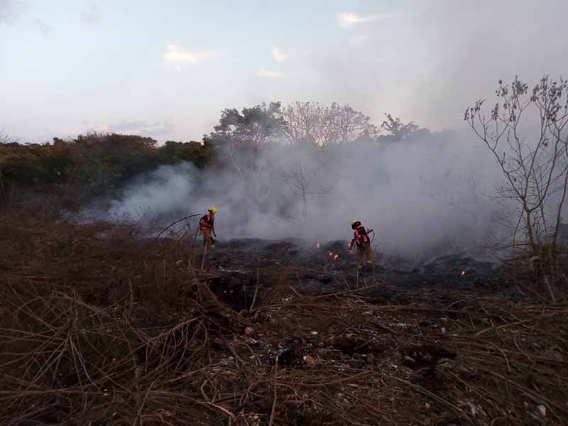 Por su parte, en el camino hacia el basurero municipal se controló otro incendio de pastizales, aunque en el lugar había acumulación de basura, principalmente botellas de plástico.