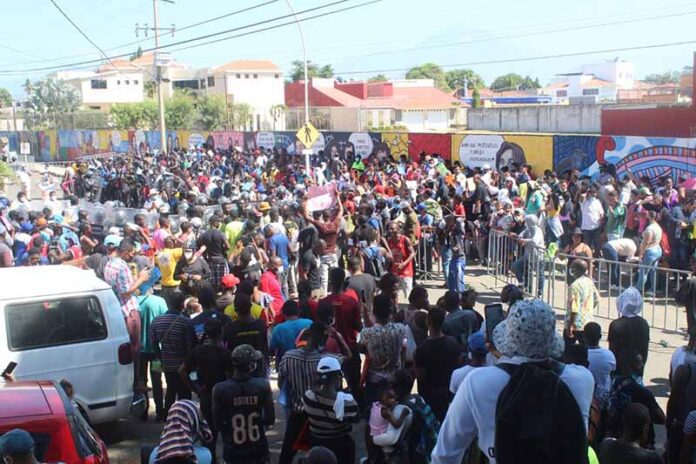 * Este Lunes los Indocumentados se Enfrentaron por enésima vez con Elementos de la Guardia Nacional, Afuera de las Oficinas Migratorias.