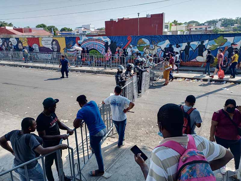 En el caso de las oficinas administrativas de Regularización Migratoria, ubicadas en la colonia Las Vegas, al sur de la ciudad, se cuenta con una población numerosa en las inmediaciones, vigilados de cerca por elementos de la Guardia Nacional (GN) con equipos antimotines, así como de la Secretaría de Seguridad Pública.