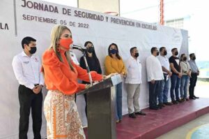 Tapachula, Chiapas; 05 de Septiembre del 2022.- Al poner en marcha las Jornadas de Seguridad y Prevención del Delito en la Escuela Preparatoria Tapachula, la presidenta municipal, Rosa Irene Urbina Castañeda, refrendó el compromiso de seguir trabajando en sinergia con los Gobiernos Federal y Estatal, para hacer de Tapachula un lugar seguro para todos.