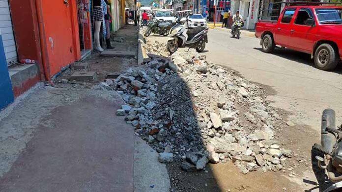 Tapachula, Chiapas; 12 de septiembre del 2022.- El Ayuntamiento Municipal de Huixtla que aún preside el alcalde, Carlos Eduardo Salazar Gam, se le ocurrió ordenar que se destruyeran más banquetas en el primer cuadro de la ciudad, con la excusa de mejorarlas, pero resulta que dejó todo tirado, y por el contrario, con esa supuesta obra han provocado problemas para los transeúntes.