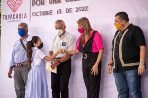 Tapachula, Chiapas; 13 de Octubre del 2022.- La presidenta municipal de Tapachula, Rosa Irene Urbina Castañeda, resaltó ante estudiantes, directivos, docentes y padres de familia de la Escuela Primaria República de Cuba, que el Ayuntamiento 2021-2024 ha fortalecido estrategias para brindar seguridad, tranquilidad y espacios seguros a los niños y niñas del municipio.