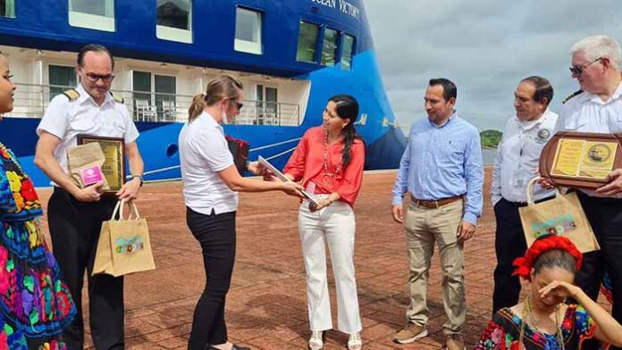 Tapachula, Chiapas; 14 de octubre del 2022.- Con el arribo del Ocean Victory de la línea naviera American Queen Voyages, este viernes se inauguró la temporada de cruceros en Puerto 2022-2023.