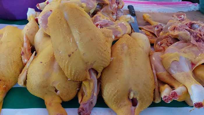 Comentó que actualmente están entre 180 y 200 Pesos las gallinas; los gallos hasta 220 Pesos; y la pechuga está a 110, al menos en su local.