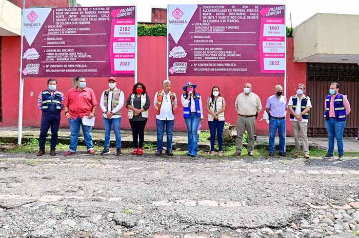 Tapachula, Chiapas; 08 de Noviembre del 2022.- Con una inversión de 4 millones 911 mil 788 Pesos del Fondo de Aportaciones para la Infraestructura Social Municipal (FISM BANOBRAS 2022), la presidenta municipal de Tapachula, Rosa Irene Urbina Castañeda dio el banderazo de inicio de la construcción de red de alcantarillado y agua entubada en la colonia 5 de Febrero, de esta Ciudad.