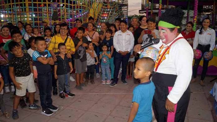 Tapachula, Chiapas; 09 de enero del 2023.- Jóvenes de la Confederación Revolucionaria de Obreros y Campesinos (CROC) en la localidad festejaron el Día de Reyes con cientos de niños y niñas de diversas colonias populares, que se dieron cita en el parque Bicentenario, en el centro de la Ciudad para compartir la tradicional rosca, además de divertirse con el espectáculo de payasos, luchadores, juguetes y juegos infantiles, como brincolines e inflables.