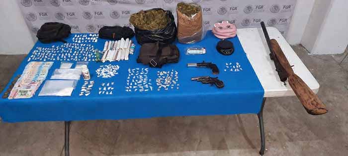 Además, 42 envoltorios con un polvo blanco con las características de la cocaína; 60 más y una bolsa de plástico que contenía cocaína en piedra; otros 16, una bolsa y un paquete rectangular con marihuana; al igual que tres armas de fuego fabricadas de forma artesanal y detuvieron a René “G”, Alberto “G”, María “P” y Ricardo “M”.