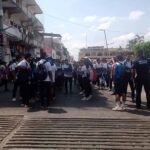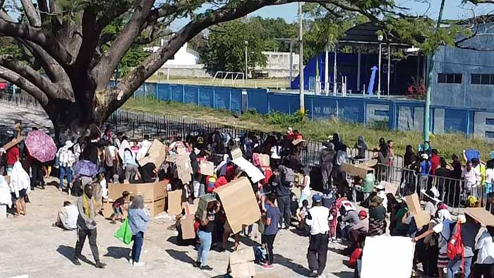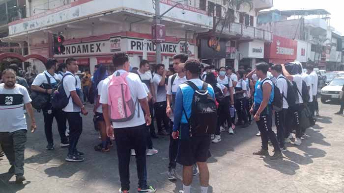 Tapachula, Chiapas; 16 de Febrero del 2023.- Estudiantes de la Escuela Normal de Licenciatura en Educación Física (ENLEF), marcharon éste día por las principales calles de la Ciudad para protestar porque el Estadio Olímpico de Tapachula, que se construyó en el sexenio pasado para la práctica del deporte profesional y para que fuera un gran atractivo internacional, el Gobierno actual lo habilitado para darle servicio a los migrantes.