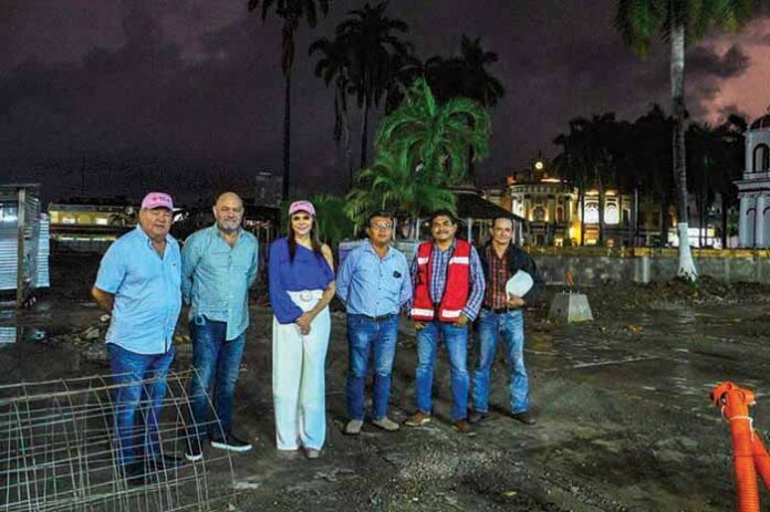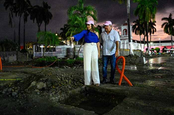 Acompañada del titular de Obras Públicas Municipales, Andrés Santiago Martínez, Urbina Castañeda constató los trabajos efectuados para plantar 94 árboles de especies endémicas que van a arborizar la plaza central tapachulteca “dándole una nueva imagen, belleza, sombra y bienestar a todos los que venimos a nuestro parque central”.