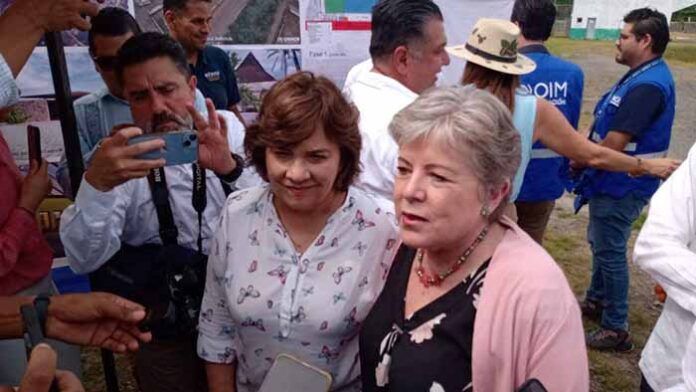 Tapachula, Chiapas; 3 de Agosto del 2023.- La secretaria de Relaciones Exteriores en México, Alicia Bárcena Ibarias, realizó este jueves su primer gira de trabajo por todo el país al encabezar varias reuniones en Tapachula, en donde dejó en claro que, de los proyectos anunciados desde el año pasado en torno a construir otro gran albergue para migrantes, «no hay nada aún».