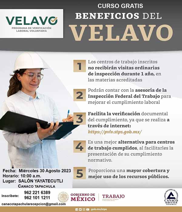 VELAVO, programa de Verificación Laboral Voluntaria. ¡Asiste al Curso en Canaco!