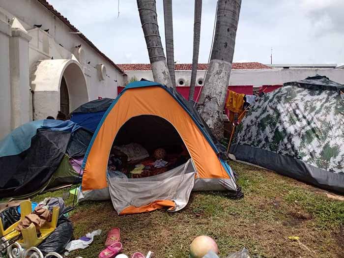 Decenas de migrantes mantienen invadidos espacios públicos con casas de campaña.