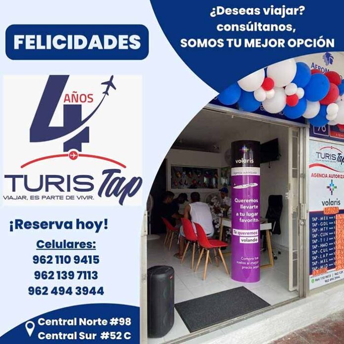 CRUCERO TOUR’S ubicada en Matriz: 1ª. Poniente #10, esquina 2ª. Norte Col. Centro., Tel. 962 626 9967; EXITUR, 17 ORIENTE 8, CENTRO, Tel. 962 529 4114 y 962 107 071, y TURISTAP Central Norte # 98 y Central Sur #52-C, Tel. 962 110 9415 y 962 139 7113.