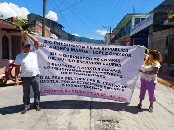Agregó que, así como se están manifestando en Huixtla, simultáneamente también lo están haciendo en otras poblaciones de la Costa de Chiapas, principalmente en aquellas poblaciones donde el ferrocarril cruza por en medio de la ciudad, lo cual constituye varios peligros.