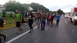 Tapachula, Chiapas; 18 de Octubre del 2023.- De acuerdo a la medición de algunas organizaciones de Derechos Humanos y religiosas, hasta este miércoles hay alrededor de treinta mil migrantes en movimiento en los municipios de la Costa de Chiapas, muchos están haciendo ese recorrido a pie y otros utilizando al servicio del transporte público.