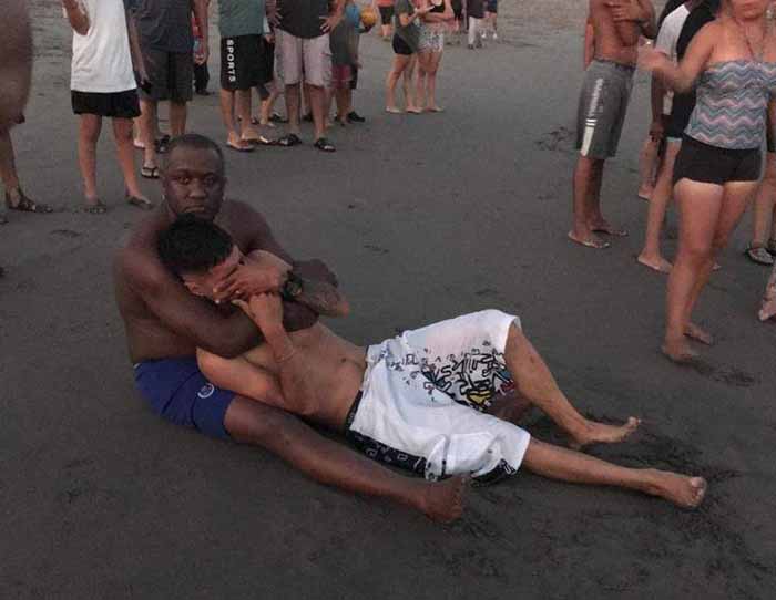 En la versión de los testigos, se dice que un hombre de mediana edad se había metido a nadar al mar pero ya no salió, ya que fue jalado mar adentro, y fue hasta que momentos después lograron sacarlo cuando lo vieron flotando, por lo que fue recuperado y trasladado a la orilla.