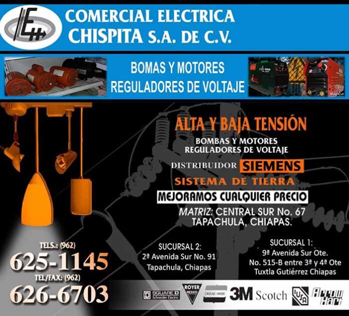 ¡ELÉCTRICA CHISPITA!, te ofrece tolo lo relacionado a material eléctrico de alta y baja tensión, bombas y motores reguladores de voltaje. ¡Vive la experiencia sensorial única con Café GRAMLICH! Cosechado con amor y tostado con maestría, encuentras todo lo relacionado con Café y sus derivados de la mejor Calidad en Tapachula. Aprovecha los descuentos, Afíliate a ¡CANACO TAPACHULA! y obtén los múltiples beneficios que tiene para ti.