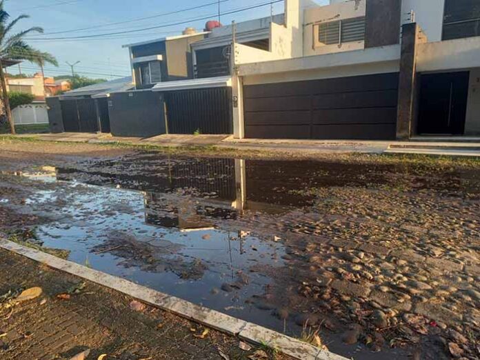 Clara muestra es la fuga de la Calle Ciruelos del Fraccionamiento Los Laureles 1, donde la fuerte fuga se mantiene día y noche.