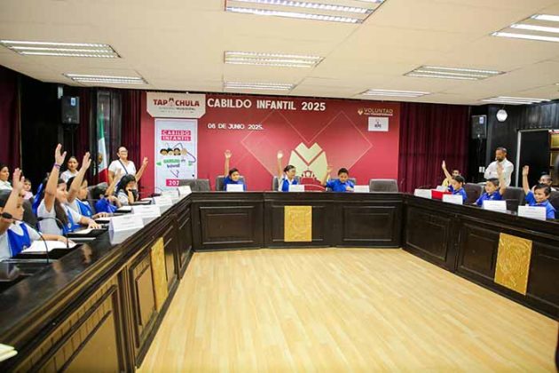 Tapachula, Chiapas.- Como parte de un ejercicio democrático para escuchar la voz de la niñez tapachulteca, el Ayuntamiento que preside el alcalde, Yamil Melgar Bravo, realizó la instalación del Cabildo Infantil 2025, con lo que se fortalece la cultura cívica, democrática y participativa.