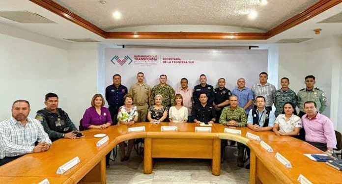 Tapachula, Chiapas.- Con la finalidad de generar un espacio de diálogo y coordinación que permita fortalecer la seguridad jurídica, prevenir delitos que afectan la actividad empresarial y promover entornos de inversión seguros y competitivos en la región, la Secretaría de la Frontera Sur, a cargo de María Amalia Toriello Elorza, encabezó la reunión “Acuerdos para la Legalidad y el Desarrollo de la Frontera Sur”, en cumplimiento a la instrucción del gobernador Eduardo Ramírez Aguilar, para quien la seguridad es un eje prioritario de su gobierno.