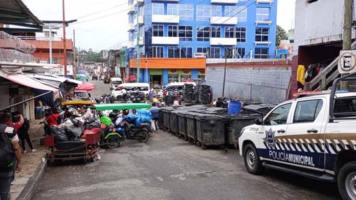 Tapachula, Chiapas 11 de Septiembre del 2025.- Comerciantes del mercado 5 de Mayo y Sebastián Escobar volvieron a manifestar su inconformar por el centro de acopio de basura que se encuentra sobre la 3ª calle poniente esquina con 12 avenida norte, en el centro de la ciudad de Tapachula.