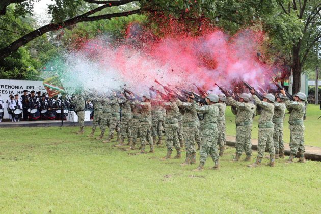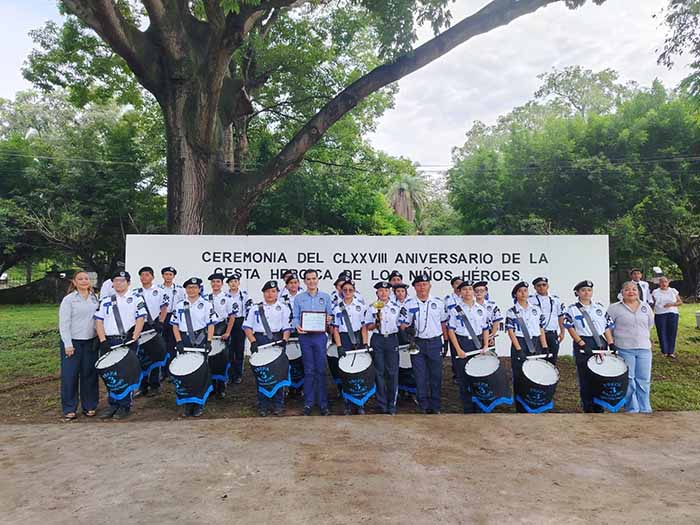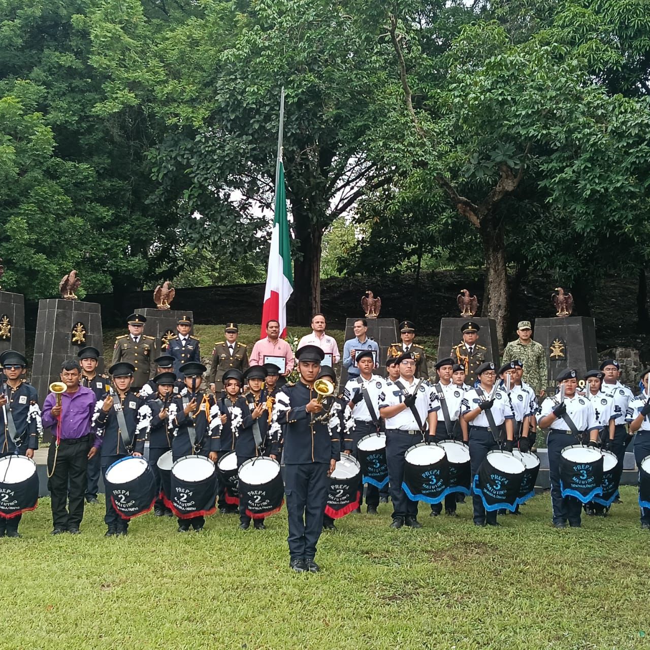 De igual forma se realizó el emotivo acto de disparar unas salvas al aire en honor a los niños héroes. Cabe agregar que en este evento participaron alumnos integrantes de las Bandas de Guerra de las Preparatoria No. 1 “Tapachula”; Preparatoria No. 2 “Eduardo J. Albores”; y Preparatoria No. 3, todas del turno matutino, quienes durante varias semanas se prepararon para el acompañamiento en el acto cívico.