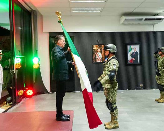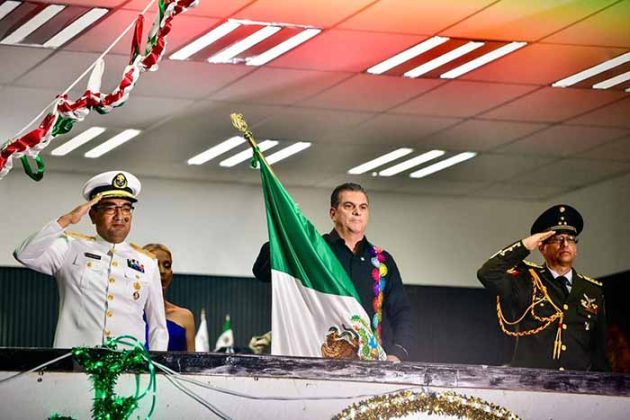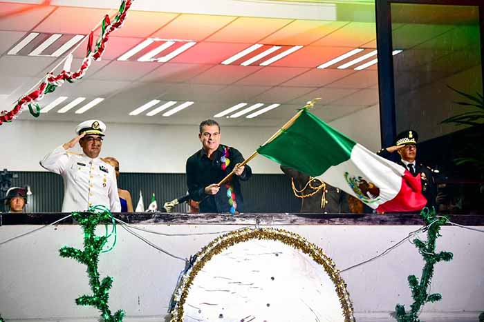 Cumpliendo con el protocolo, el alcalde recibió de la escolta de la 36ª Zona Militar la Bandera Nacional y posteriormente salió al balcón de la sede del Gobierno Municipal para pronunciar la histórica arenga que exaltó los valores de unidad, justicia e identidad nacional.