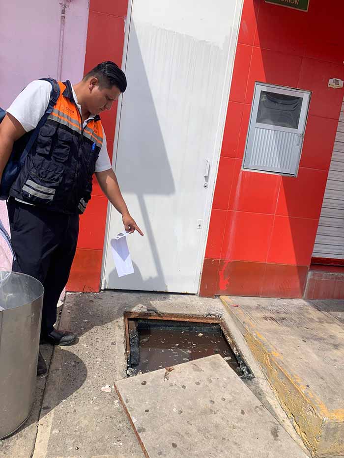 Fuentes cercanas al establecimiento, manifestaron que el problema de los malos olores es por un registro de drenaje, pero que está afuera del negocio, por lo que se pidió el apoyo del personal del Comité de Agua Potable y Alcantarillado (COAPATAP), quien aún no había llegado.